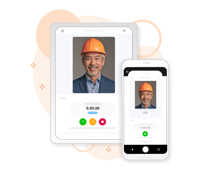 建設現場では、モバイルアプリ、タイムクロックソフト、生体認証スキャナー、あるいは従来のタイムシートなど、さまざまな方法で勤怠を記録できます。これらのツールを使えば、作業員は出退勤の打刻を行い、休憩を記録し、特定のプロジェクトや作業に費やした勤務時間を追跡できます。