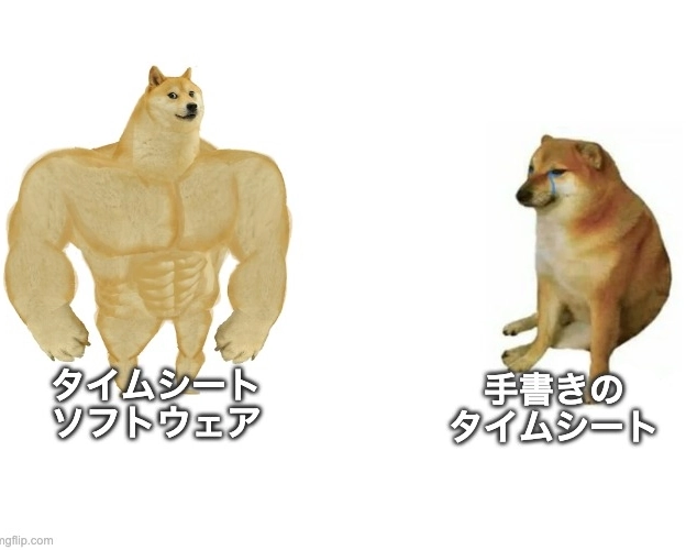 手入力のタイムシートとタイムシートソフトは、効率や使いやすさの面でどうしても比較されがちです。ここでは、その違いを見事に捉えた楽しいミームをご紹介します。