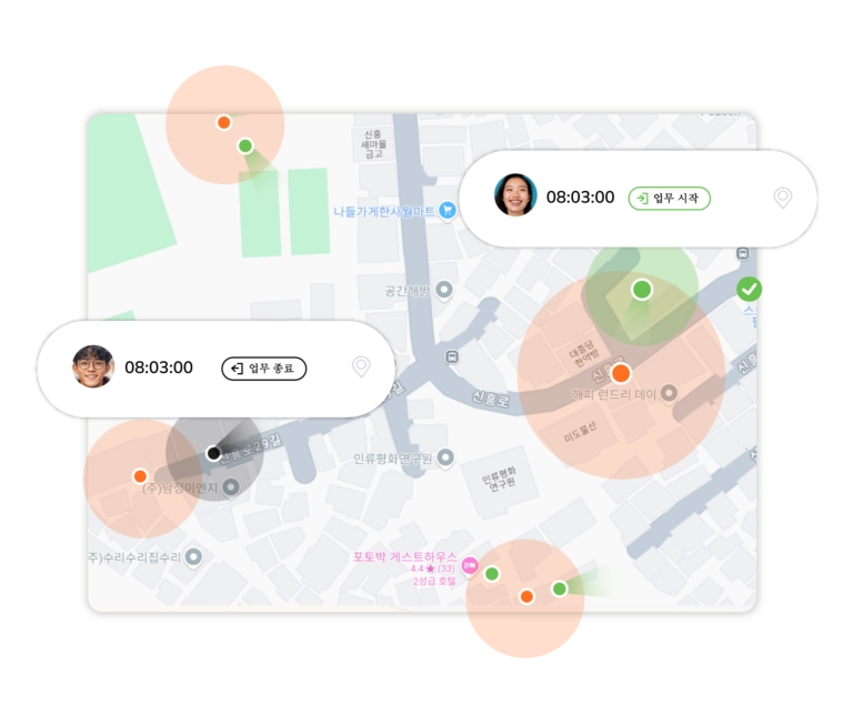 출퇴근 기록에 위치 정보를 함께 저장하세요