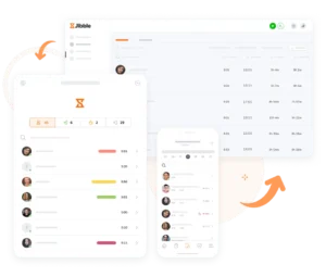 Bewaak en analyseer de productiviteit van werknemers op locatie met de aanwezigheidstracker of kies voor het op afstand bijhouden van hun werktijden. Jibble’s urenstaten zijn beschikbaar op je mobiel, tablet of desktop zodat je overal de tijd in het oog kunt houden.