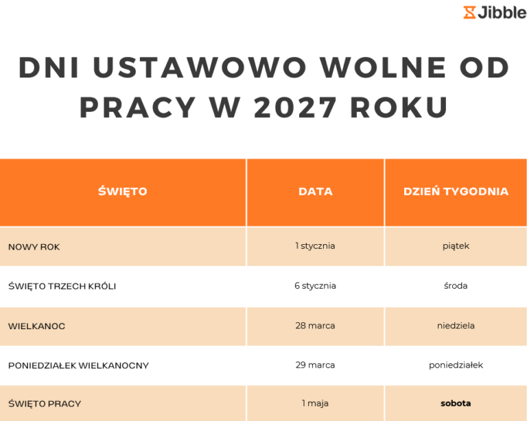 Dni wolne od pracy w 2027 roku