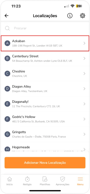 Dica💡: Editar localizações em massa pode ser feito pelo aplicativo web do Jibble. Para mais informações, confira nosso artigo sobre gerenciar localizações e cercas virtuais na web.