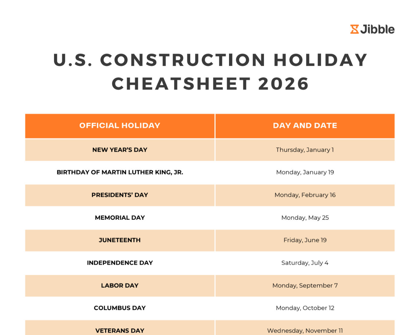 Discover the US holidays observed in construction for 2026. Download the sheet.