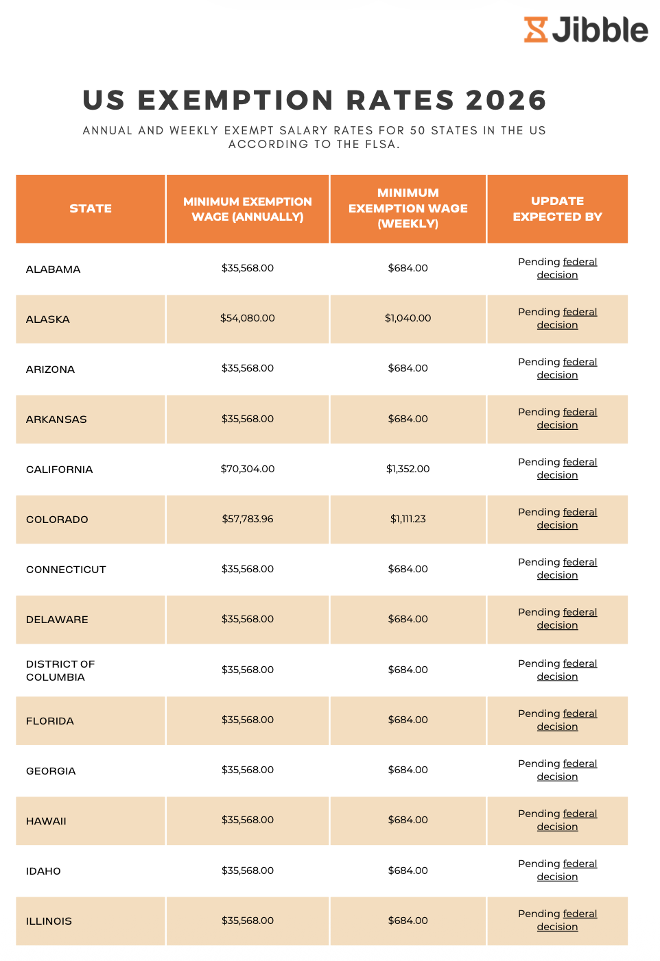 In 2026, the standard federal exemption level remains $684 per week ($35,568 annually) for most states, unless a state sets a higher threshold.