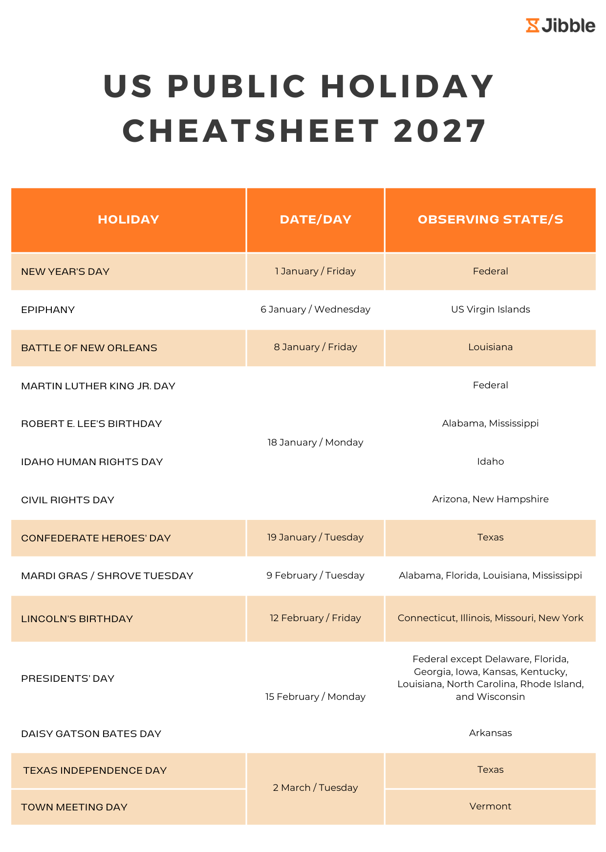 Jibble’s free US Public Holiday Cheat Sheet for 2027