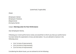 Warning letter template with acknowledgement of receipt for employee absenteeism.