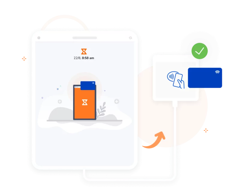 Jibbles RFID-app för närvaro kan också användas med externa läsare. Anslut bara läsaren till din enhet eller surfplatta, så är du redo att köra. Med Jibble kan alla registrera närvaron via RFID-teknik.