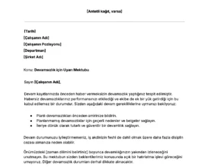 Çalışanların devamsızlığı için alındığını teyit eden uyarı mektubu şablonu.