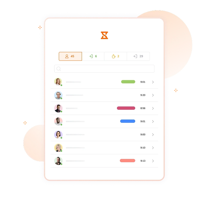 Kontrol panelinden anlık olarak kimin iş başında, kimin izinli olduğuna dair anlık bilgiler edinin. Misafir girişleri ya da oda servisi taleplerini yönetmek fark etmeksizin, herkesin ne üzerinde çalıştığını görüntüleyebilirsiniz. Tüm ihtiyaçlarınız Jibble’da!