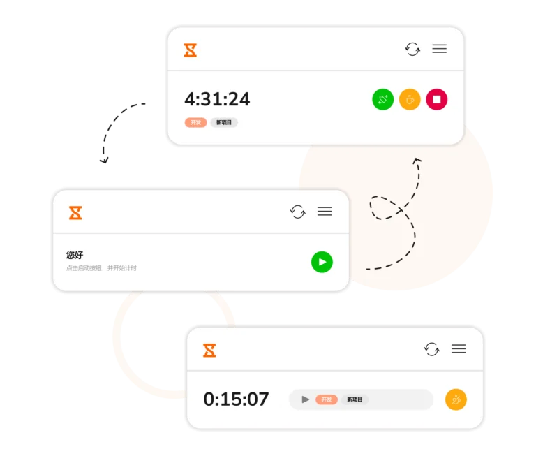 只需注册一个免费账户,设置您的活动和项目,以供追踪雇员们的工时并邀请您的雇员立即开启各人的生产力提升之旅!